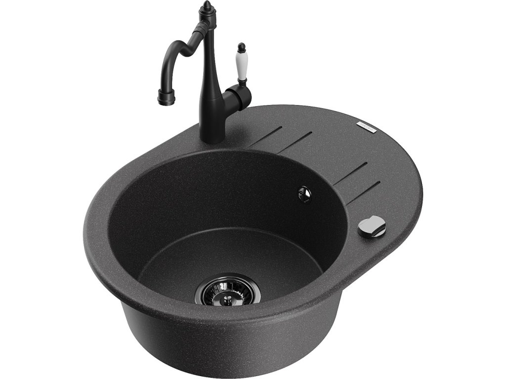 MEXEN/S - Kevin granitový dřez 1-miska s odkapávačem včetně baterie Carla, černá kropenatá 6517-76-670700-70-B