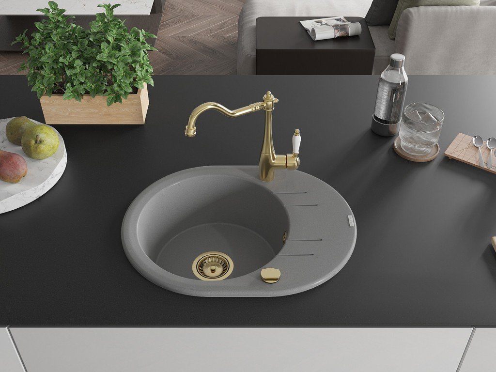 MEXEN/S - Kevin granitový dřez 1-miska s odkapávačem včetně baterie Carla, šedá 6517-71-670700-50