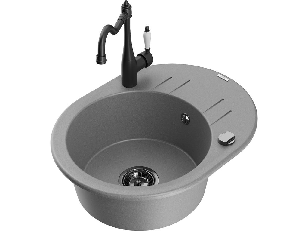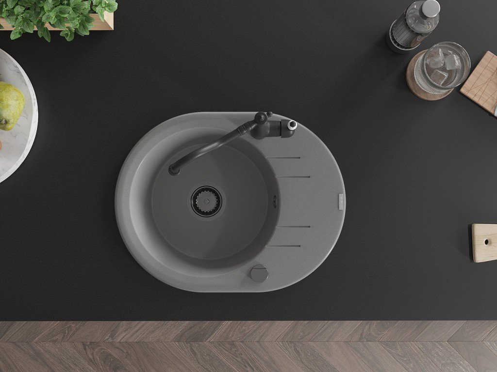 MEXEN/S - Kevin granitový dřez 1-miska s odkapávačem včetně baterie Carla, šedá 6517-71-670700-70-B