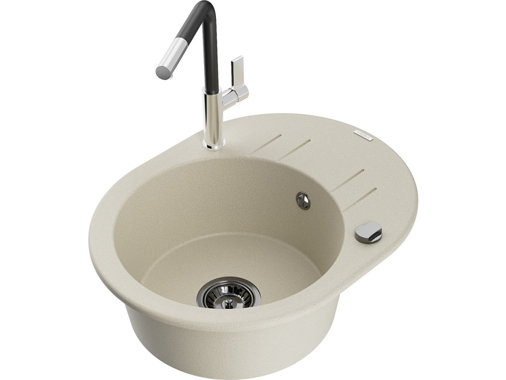 MEXEN/S - Kevin granitový dřez 1-miska s odkapávačem včetně baterie Flora, béžová 6517-69-670401-07-B