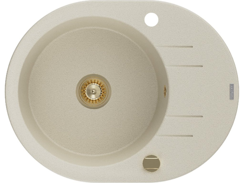 MEXEN/S - Kevin granitový dřez 1 s odkapávačem 586x458 mm, béžová, + zlatý sifon 6517581005-69-G