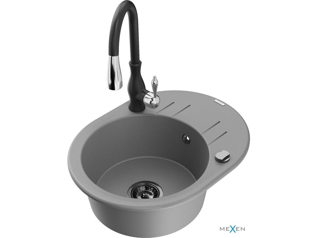 MEXEN/S - Kevin granitový dřez 1 s odkapávačem včetně baterie Savita, šedá 6517-71-672601-70-B