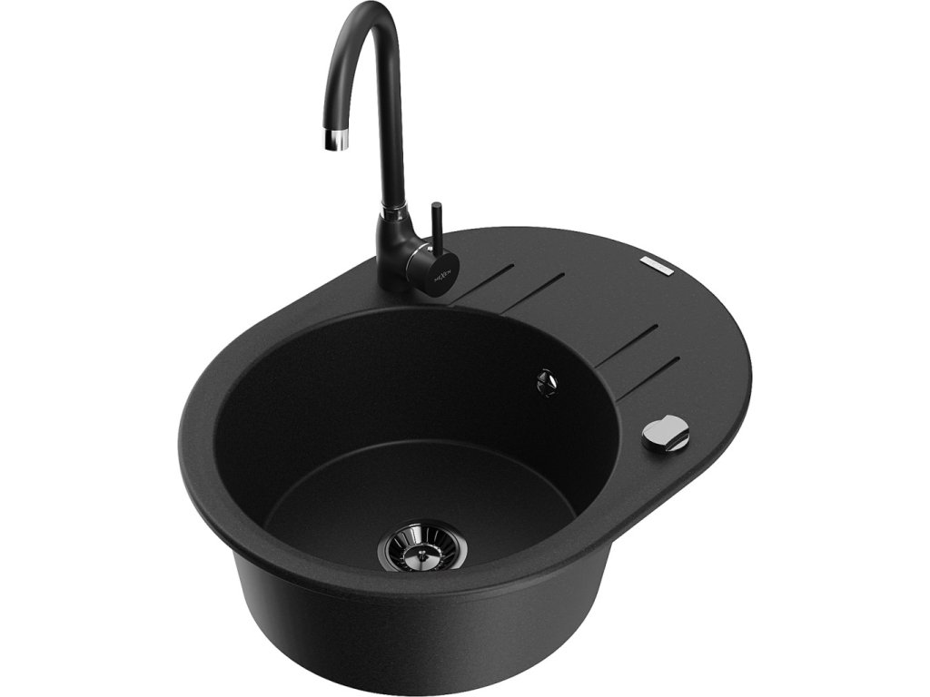 MEXEN/S - Kevin granitový dřez 1 s odkapávačem včetně baterie Telma, černá 6517-77-670200-70-B