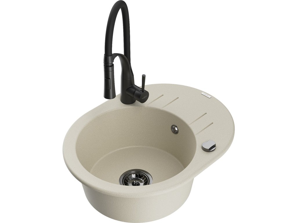 MEXEN/S - Kevin granitový dřez s odkapávačem včetně baterie Aster, béžová 6517-69-73450-70-B