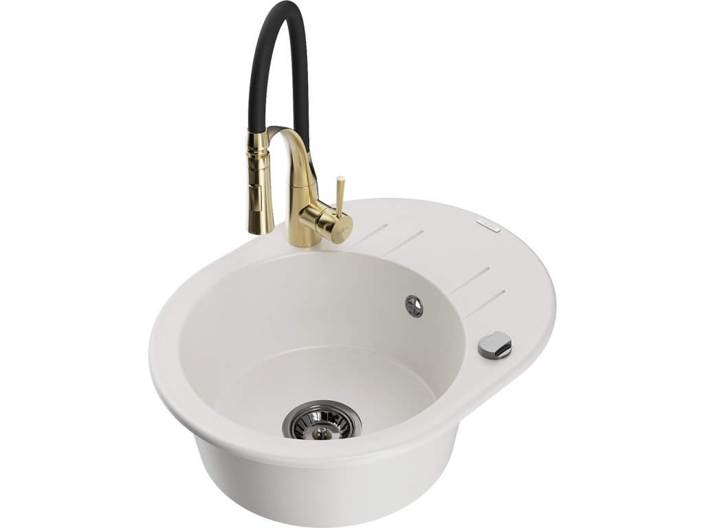MEXEN/S - Kevin granitový dřez s odkapávačem včetně baterie Aster, bílá 6517-20-73450-57-B