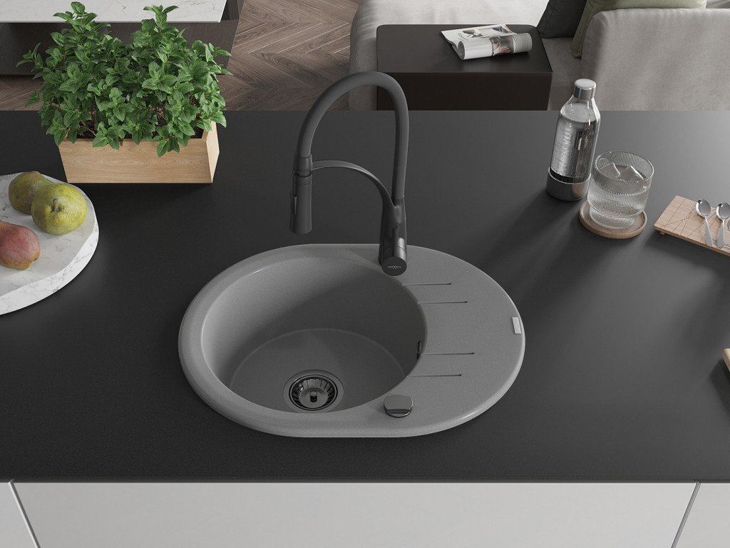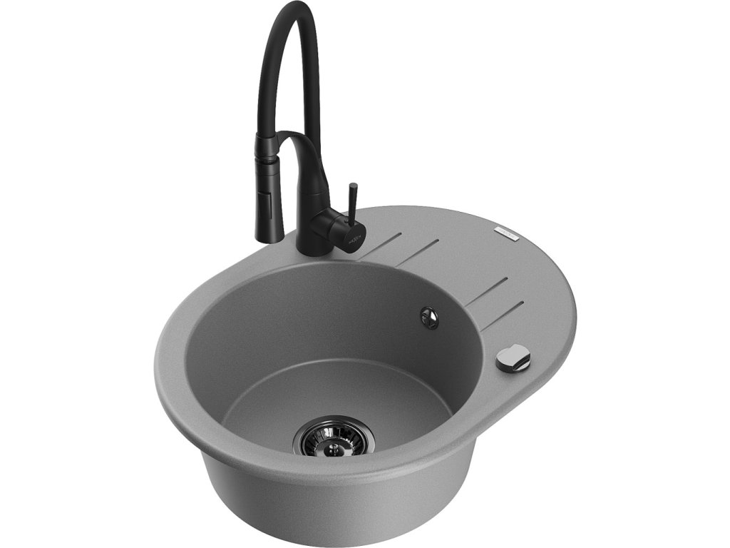 MEXEN/S - Kevin granitový dřez s odkapávačem včetně baterie Aster, šedá 6517-71-73450-70-B