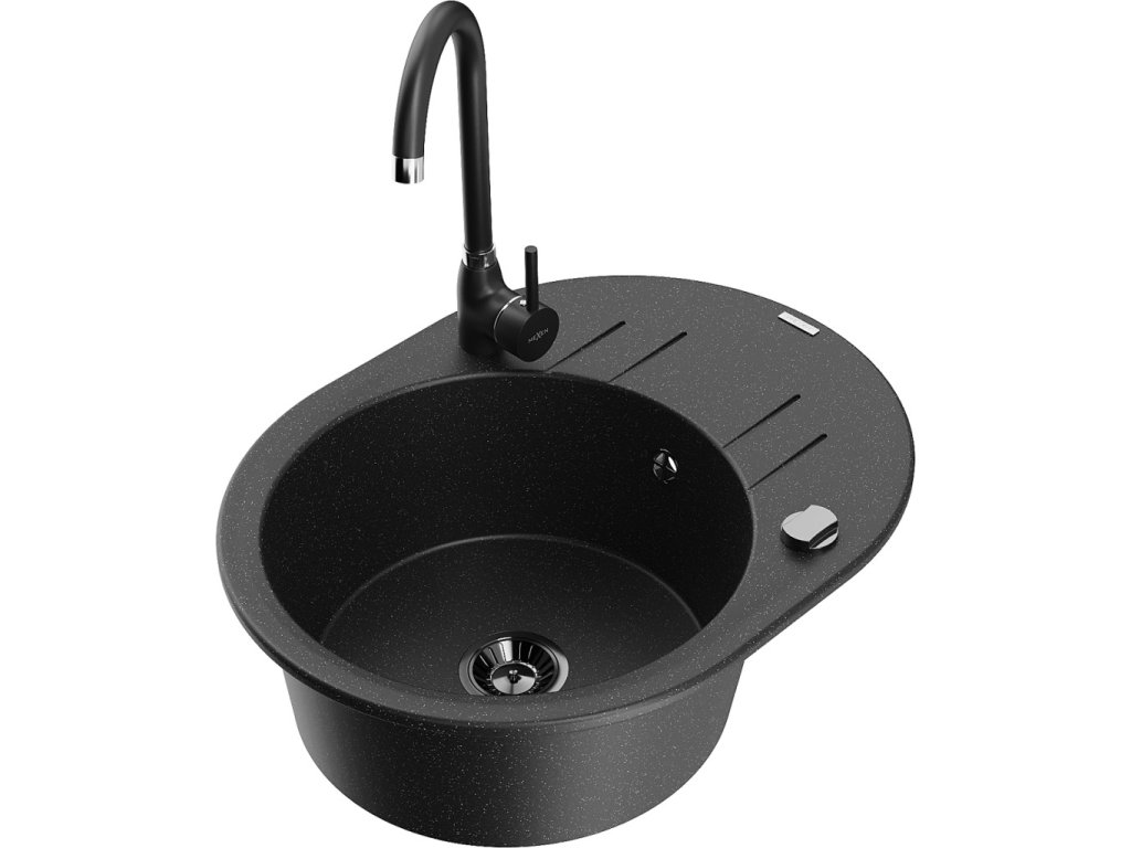 MEXEN/S - Kevin granitový dřez s odkapávačem včetně baterie Telma, černá/stříbrná metalik 6517-73-670200-70-B