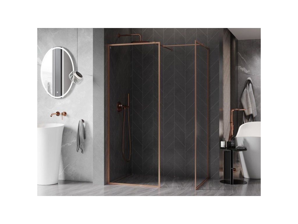 MEXEN/S - Kioto-F Sprchová zástěna WALK-IN s rámem 100 x 75, transparent 8 mm, měď kartáčovaná 800-100-202-04-65-075