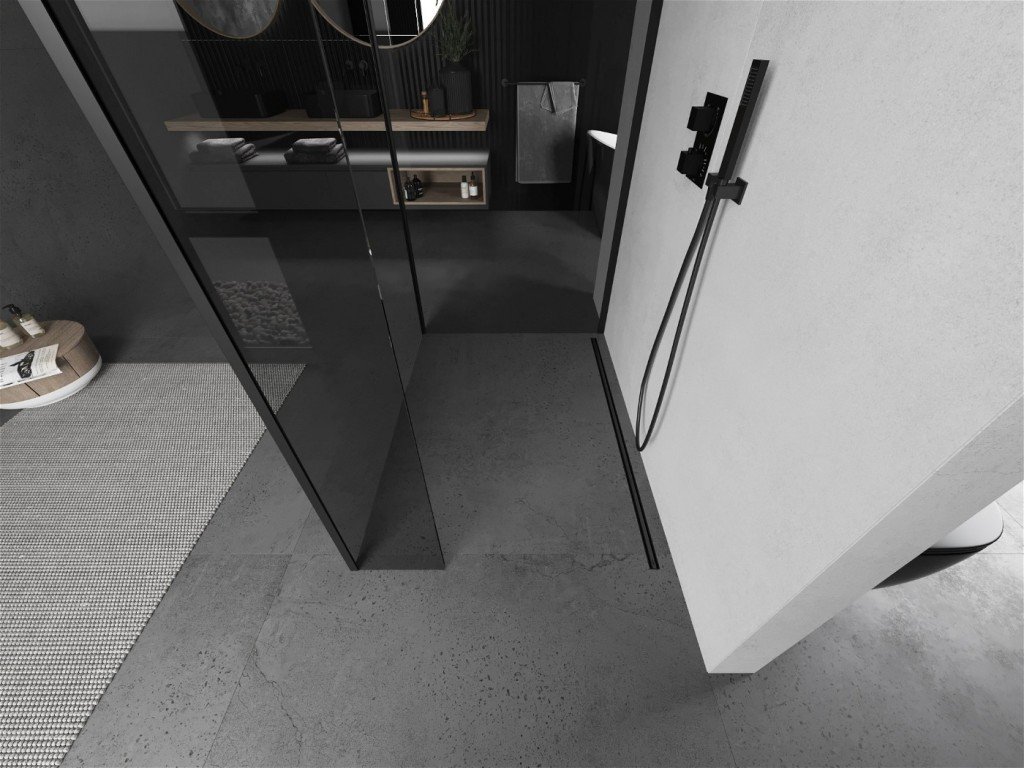 MEXEN/S - Kioto Sprchová zástěna WALK-IN 125 x 90 x 40, transparent, černá 800-125-090-221-70-00-040