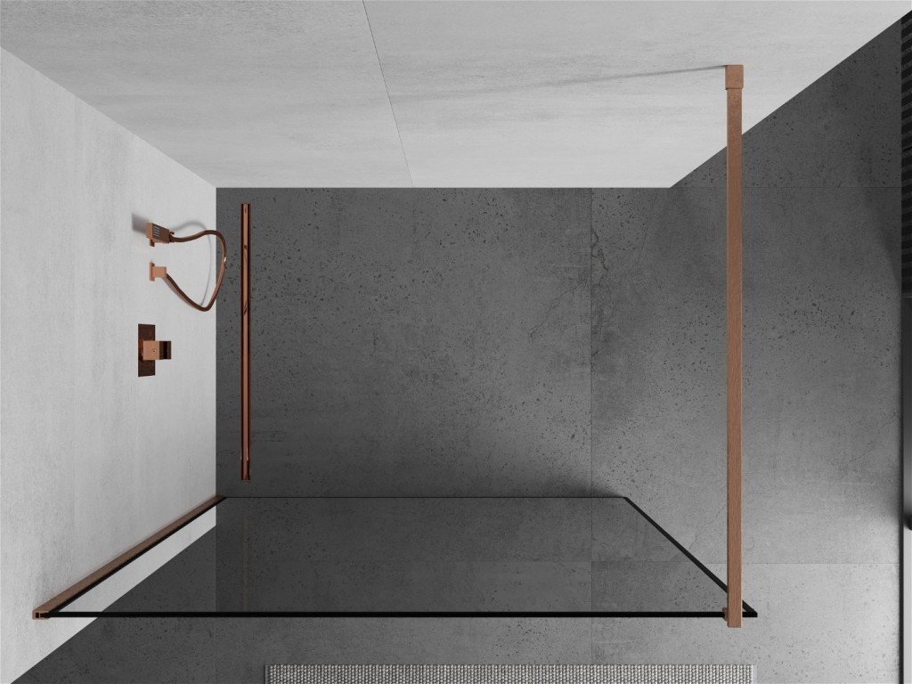 MEXEN/S - Kioto Sprchová zástěna WALK-IN 70 x 200, černý vzor 8 mm, měď kartáčovaná 800-070-101-65-70