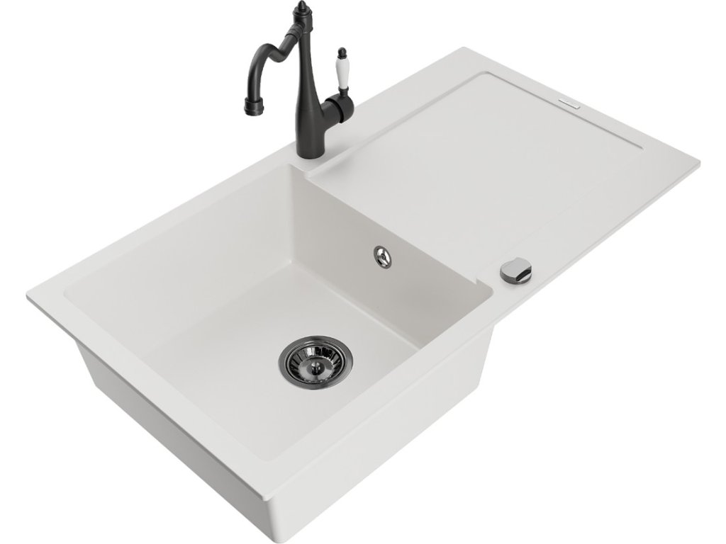 MEXEN/S - Leo granitový dřez 1-miska s odkapávačem včetně baterie Carla, bílá 6501-20-670700-70