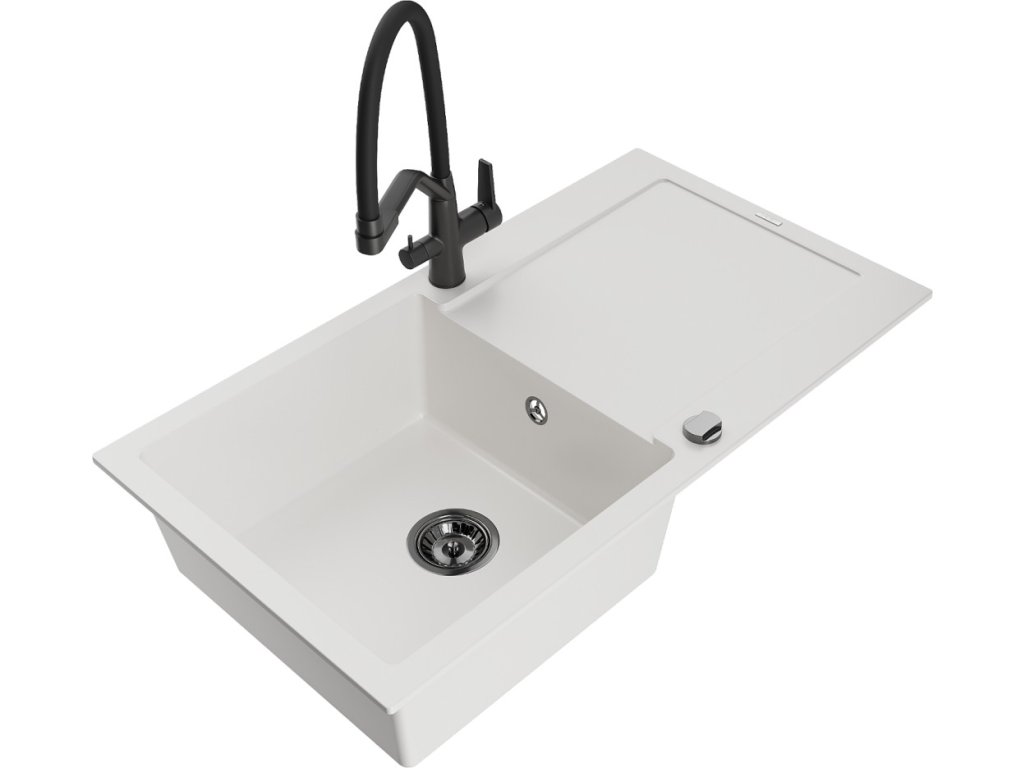 MEXEN/S - Leo granitový dřez 1-miska s odkapávačem včetně baterie Duo, bílá 6501-20-671701-70-B