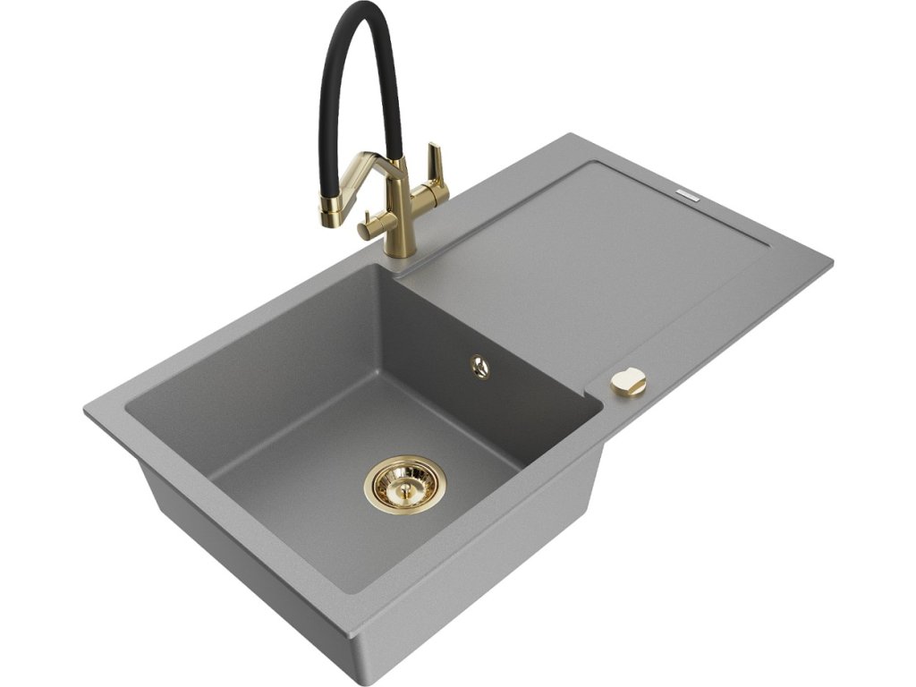 MEXEN/S - Leo granitový dřez 1-miska s odkapávačem včetně baterie Duo, šedá 6501-71-671701-57-G
