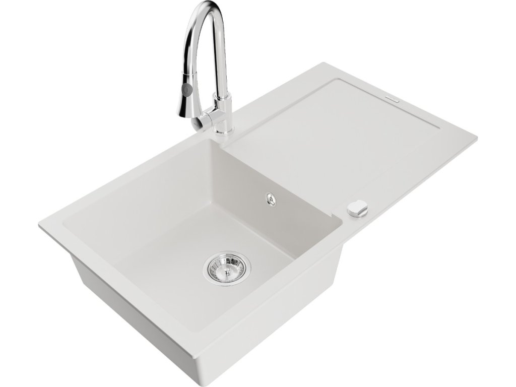 MEXEN/S - Leo granitový dřez 1-miska s odkapávačem včetně baterie Elia, bílá 6501-20-670101-00