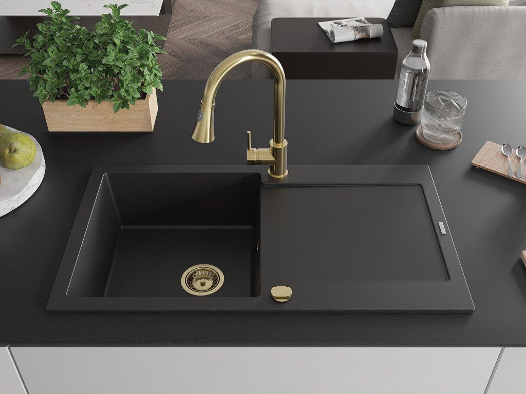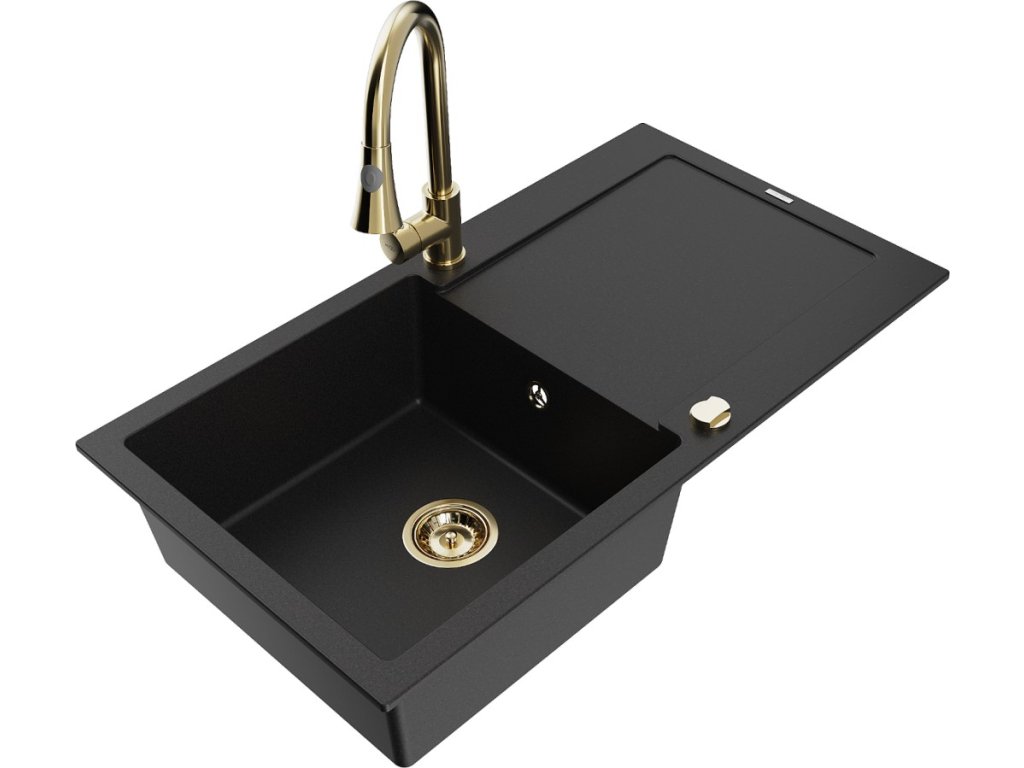 MEXEN/S - Leo granitový dřez 1-miska s odkapávačem včetně baterie Elia, černá 6501-77-670101-50