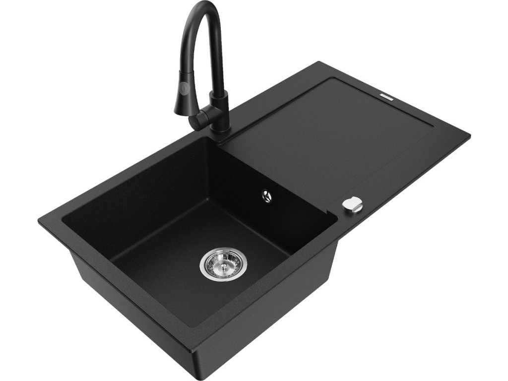 MEXEN/S - Leo granitový dřez 1-miska s odkapávačem včetně baterie Elia, černá 6501-77-670101-70