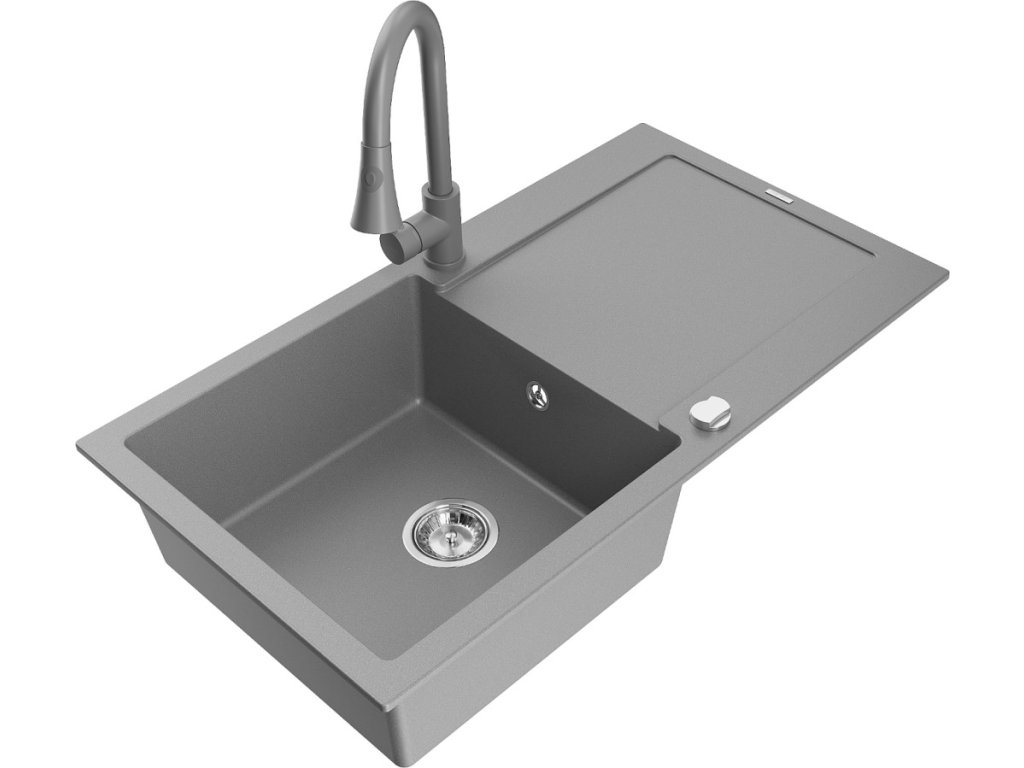 MEXEN/S - Leo granitový dřez 1-miska s odkapávačem včetně baterie Elia, šedá 6501-71-670101-71