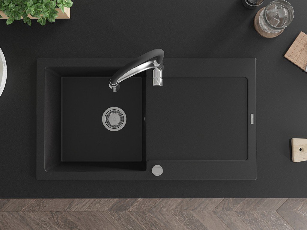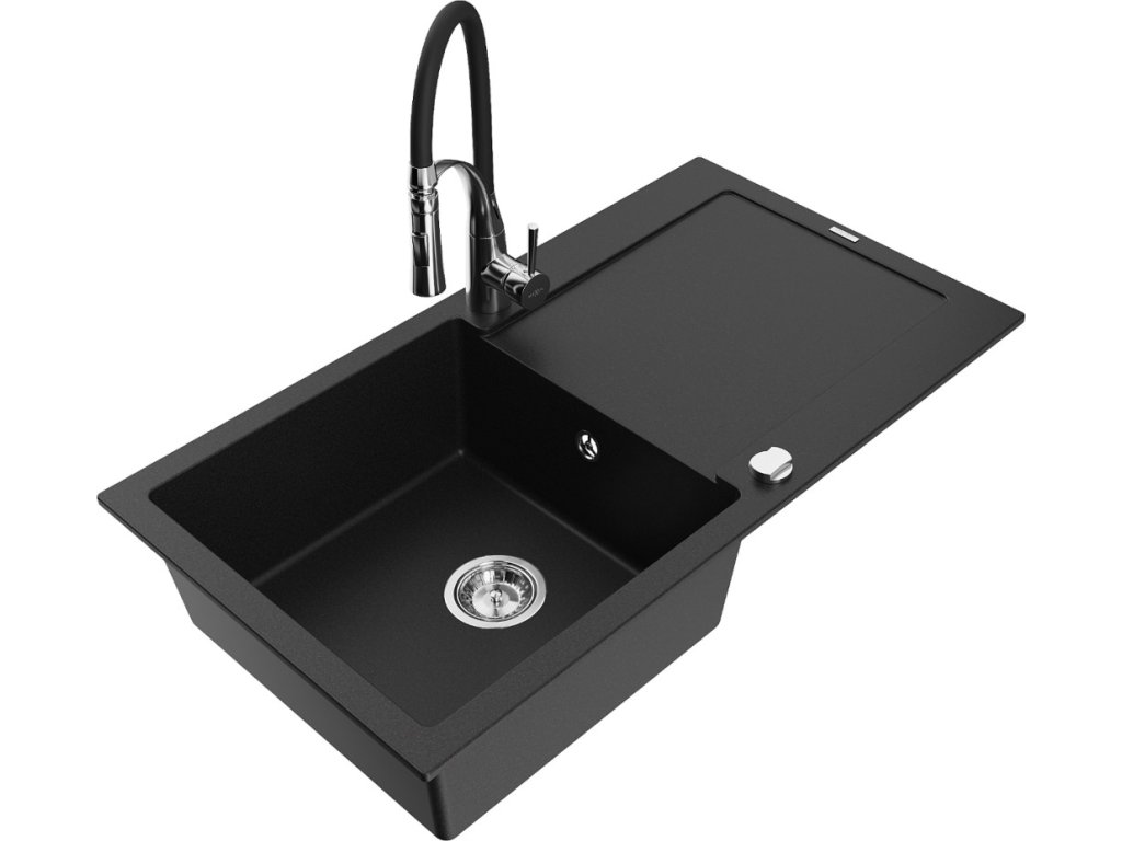 MEXEN/S - Leo granitový dřez 1 s odkapávačem včetně baterie Aster, černá 6501-77-73450-07