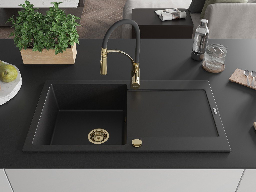 MEXEN/S - Leo granitový dřez 1 s odkapávačem včetně baterie Aster, černá 6501-77-73450-57-G