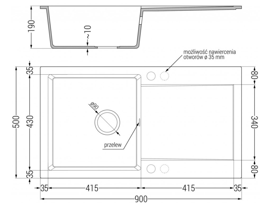 Dva dodatečné vyfrézované otvory pro samoděrování ø35