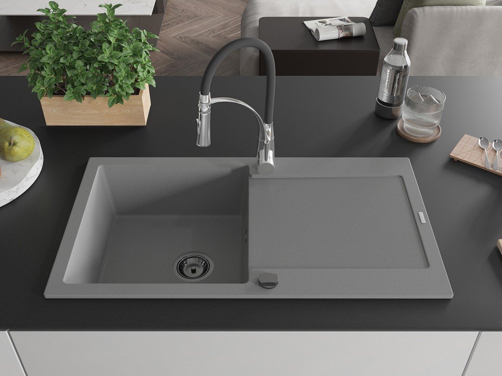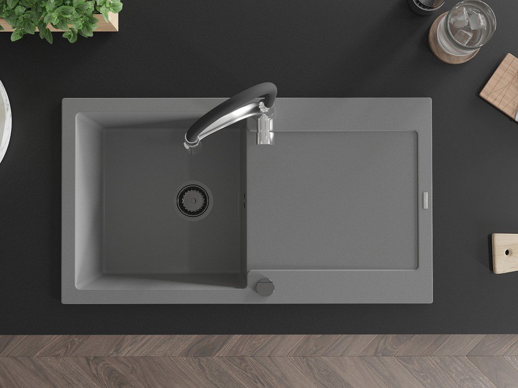 MEXEN/S - Leo granitový dřez 1 s odkapávačem včetně baterie Aster, šedá 6501-71-73450-07-B