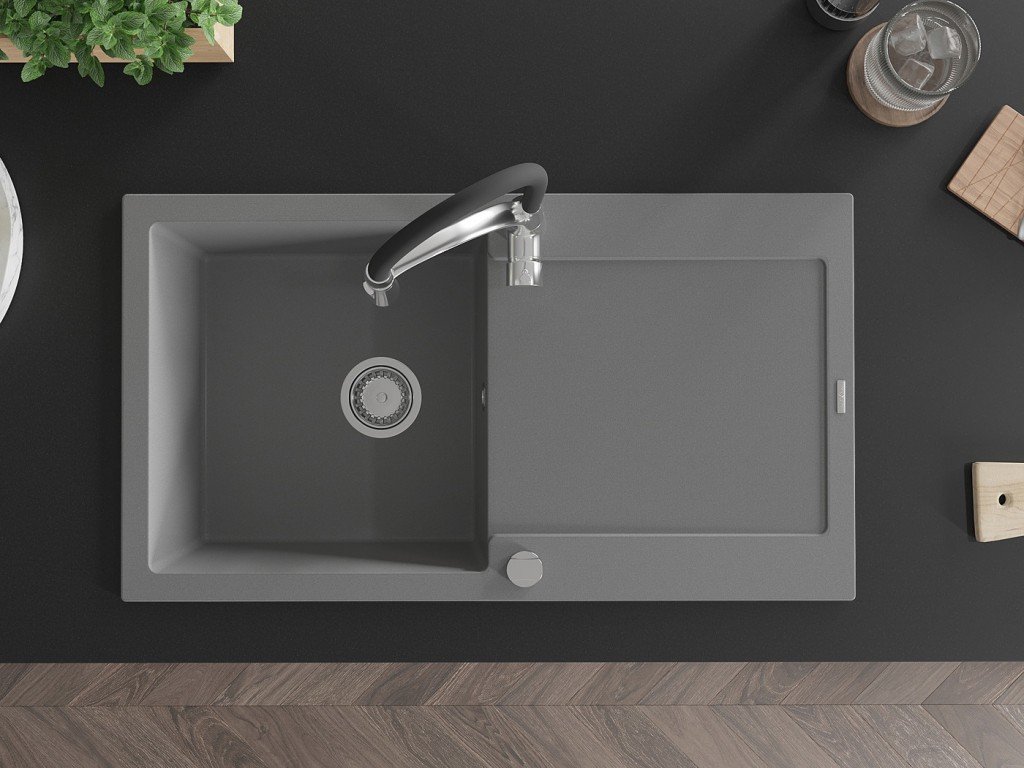 MEXEN/S - Leo granitový dřez 1 s odkapávačem včetně baterie Aster, šedá 6501-71-73450-07