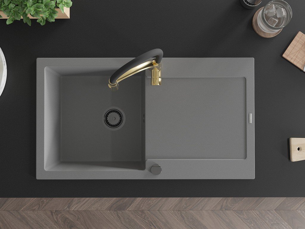 MEXEN/S - Leo granitový dřez 1 s odkapávačem včetně baterie Aster, šedá 6501-71-73450-57-B