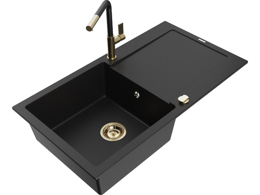 MEXEN/S - Leo granitový dřez 1 s odkapávačem včetně baterie Flora, černá 6501-77-670401-57-G