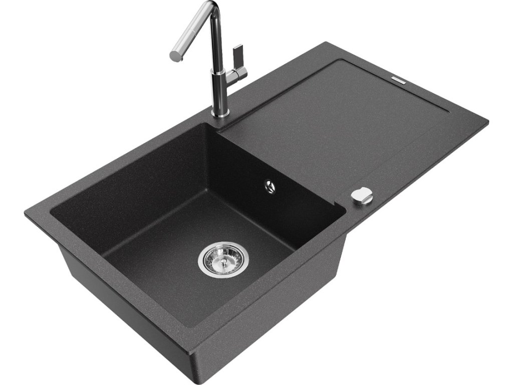 MEXEN/S - Leo granitový dřez 1 s odkapávačem včetně baterie Flora, černá kropenatá 6501-76-670401-00