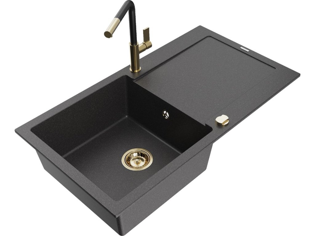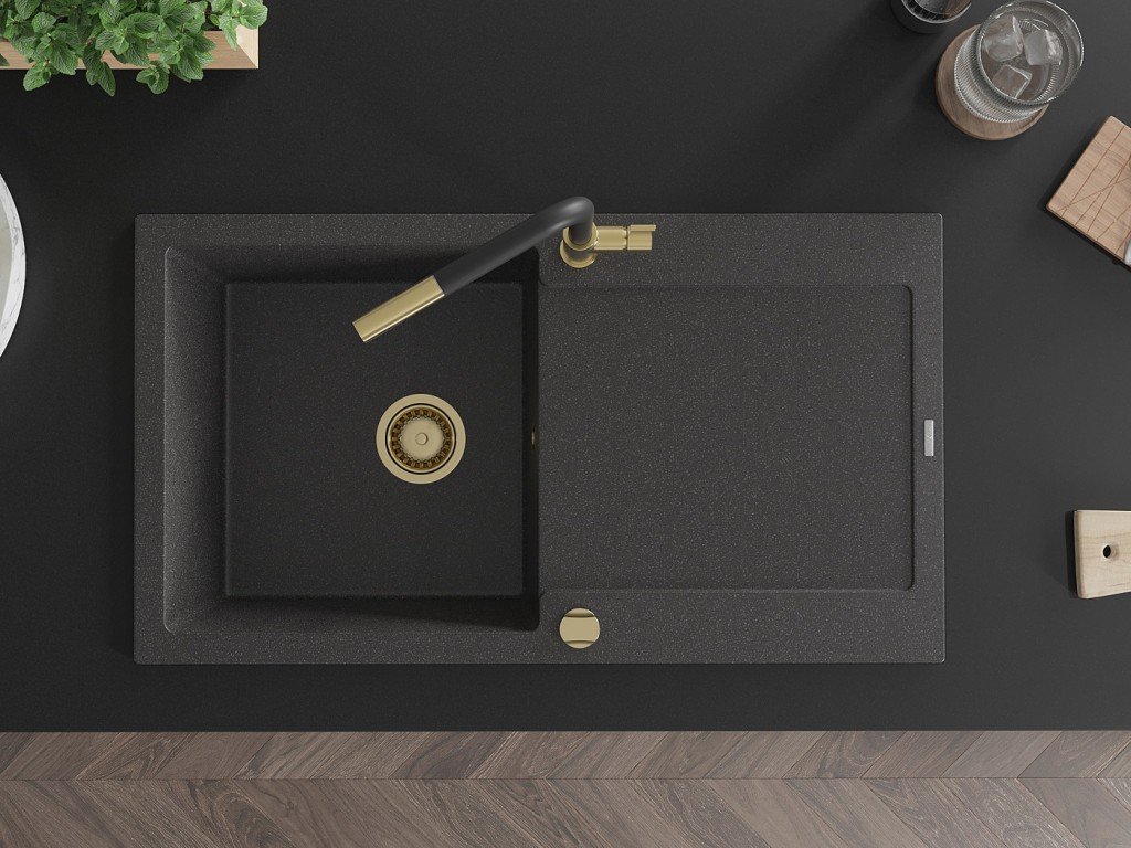 MEXEN/S - Leo granitový dřez 1 s odkapávačem včetně baterie Flora, černá kropenatá 6501-76-670401-57-G