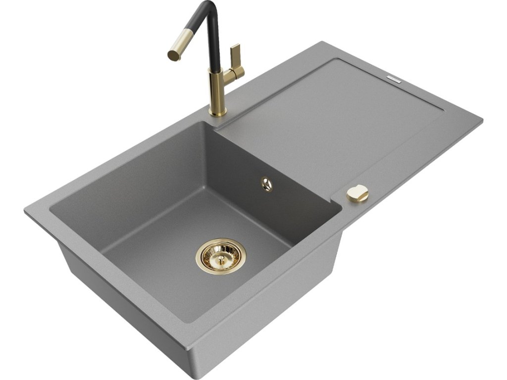 MEXEN/S - Leo granitový dřez 1 s odkapávačem včetně baterie Flora, šedá 6501-71-670401-57-G