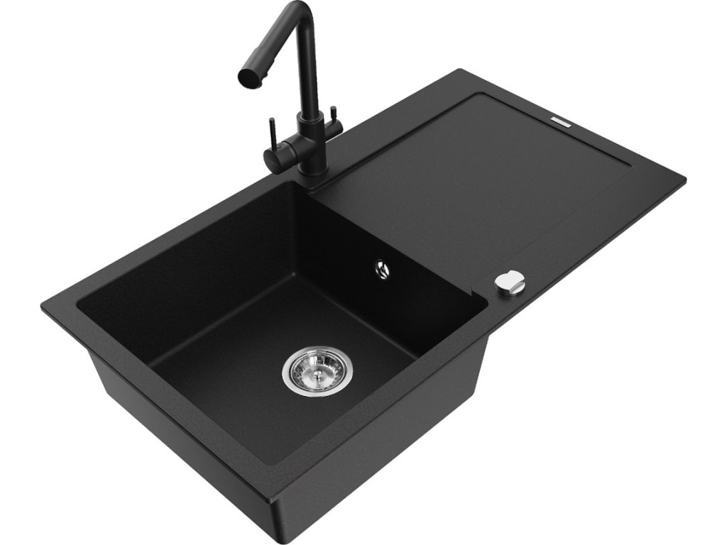 MEXEN/S - Leo granitový dřez s odkapávačem včetně baterie Duero, černá 6501-77-671600-70