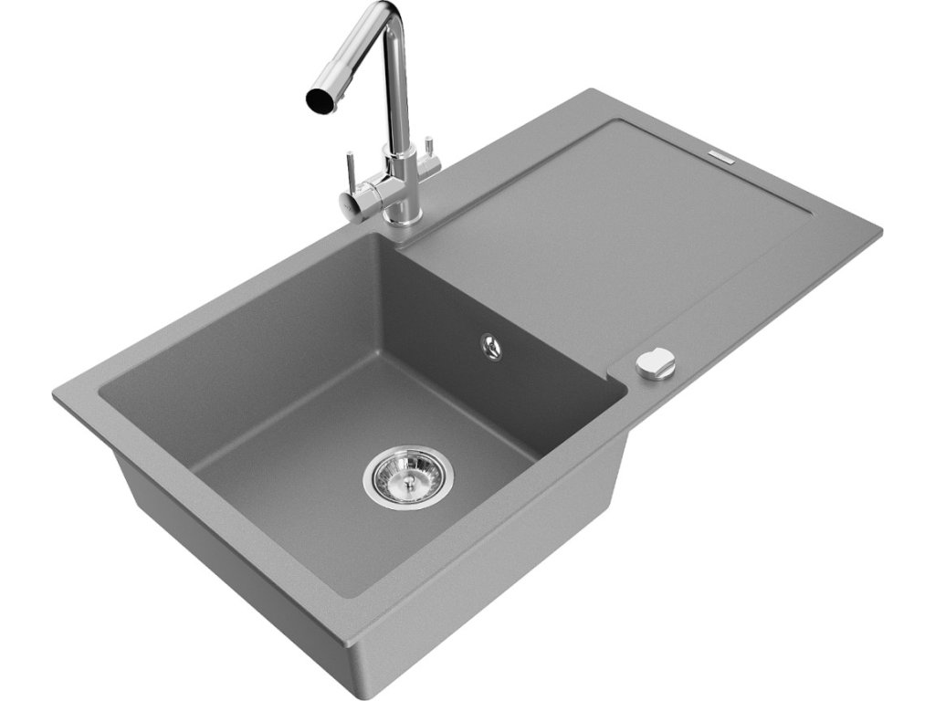 MEXEN/S - Leo granitový dřez s odkapávačem včetně baterie Duero, šedá 6501-71-671600-00