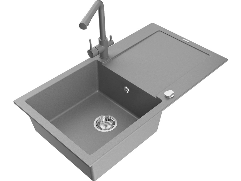 MEXEN/S - Leo granitový dřez s odkapávačem včetně baterie Duero, šedá 6501-71-671600-71