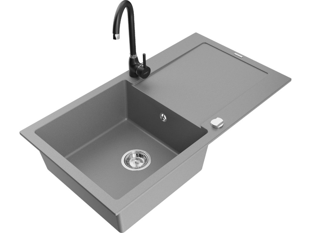 MEXEN/S - Leo granitový dřez s odkapávačem včetně baterie Telma, šedá 6501-71-670200-70