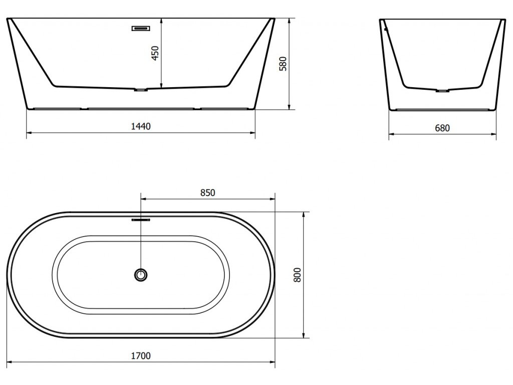 MEXEN/S - Luna vana volně stojící 170 x 80, bílá, sifon a přepad nikl kartáčovaná 52031708000-97