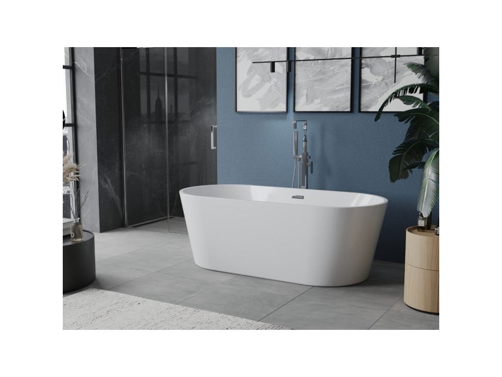MEXEN/S - Luna volně stojící vana 140 x 75, bílá, sifon a přepad chrom 52031407500-01