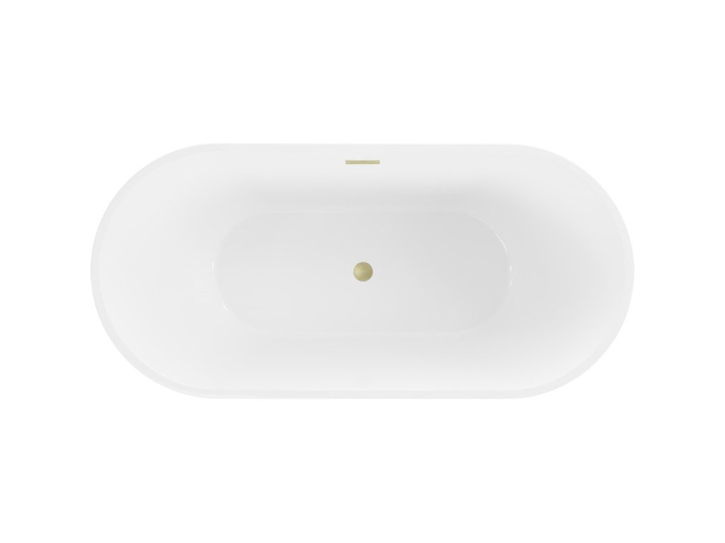 MEXEN/S - Luna volně stojící vana 140 x 75, bílá, sifon a přepad zlatá kartáčovaná 52031407500-55