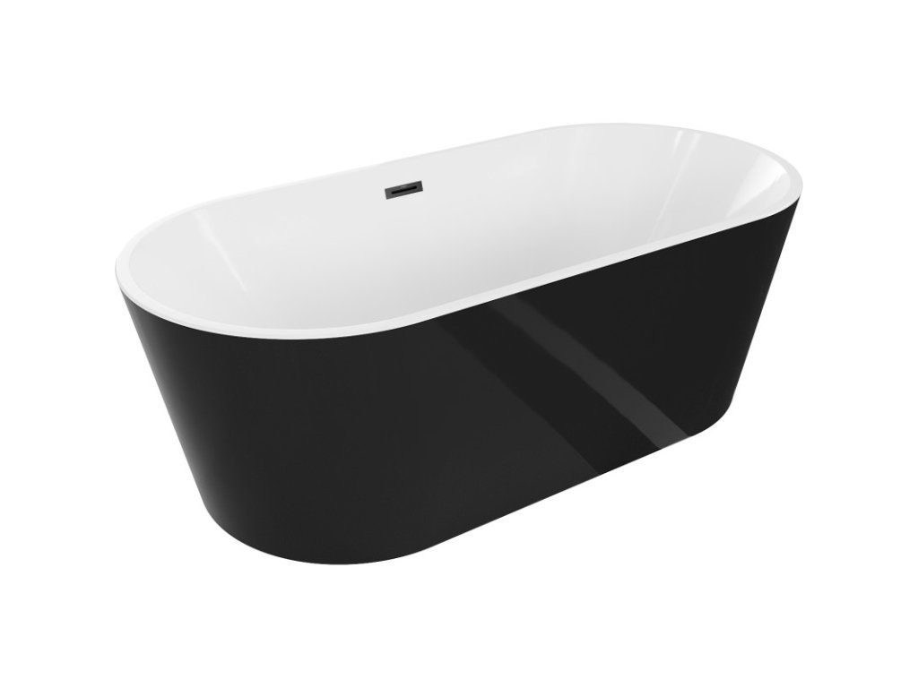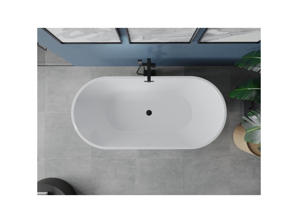 MEXEN/S - Luna volně stojící vana 140 x 75, bílá/černá, sifon a přepad černá 52031407575-70