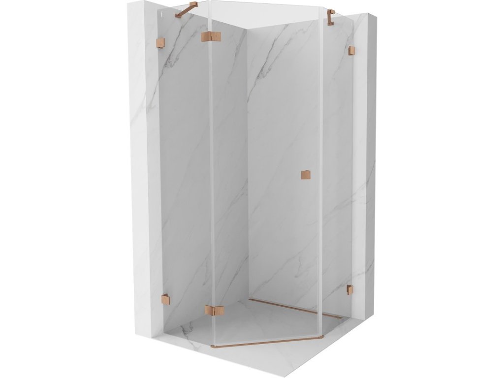 MEXEN/S - Lunar sprchový kout pětiboký křídlový levá 80 x 80, transparent, měď kartáčovaná 831-080L-080P-65-00-L