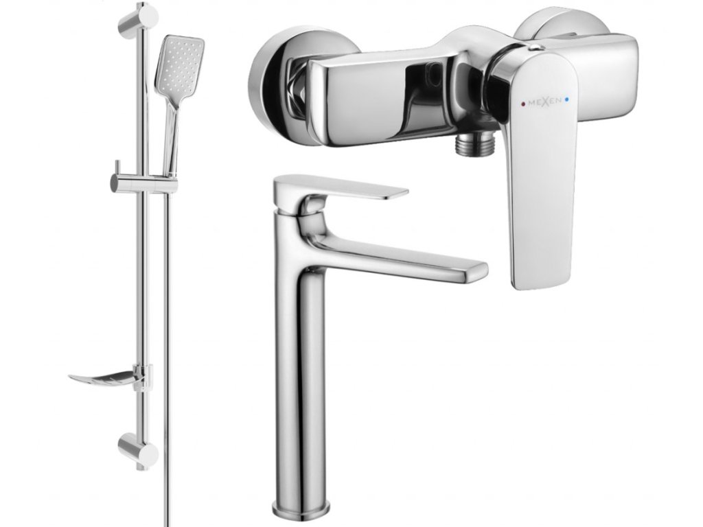 MEXEN/S - Lynx DF62 SET umyvadlová a sprchová baterie s příslušenstvím, chrom 745914DF62-00