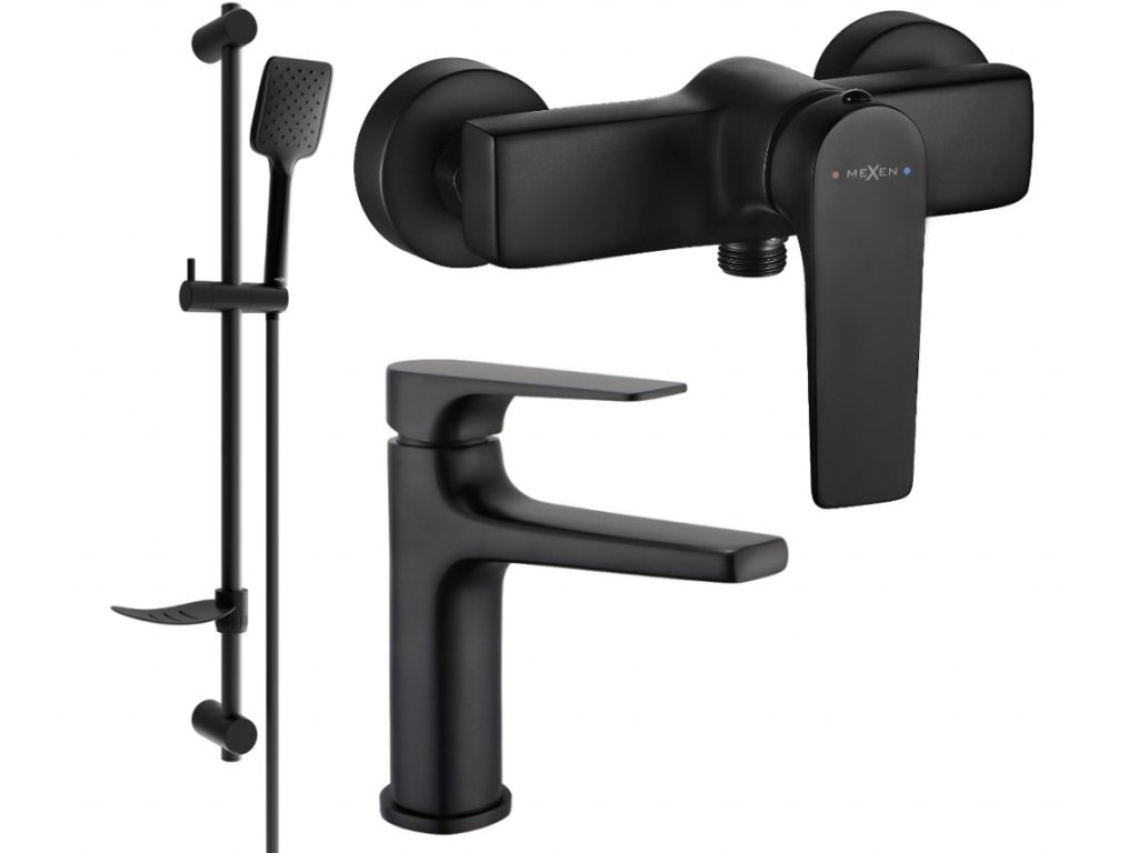 MEXEN/S - Lynx DF62 SET umyvadlová baterie + sprchová s příslušenstvím, černá 745904DF62-70