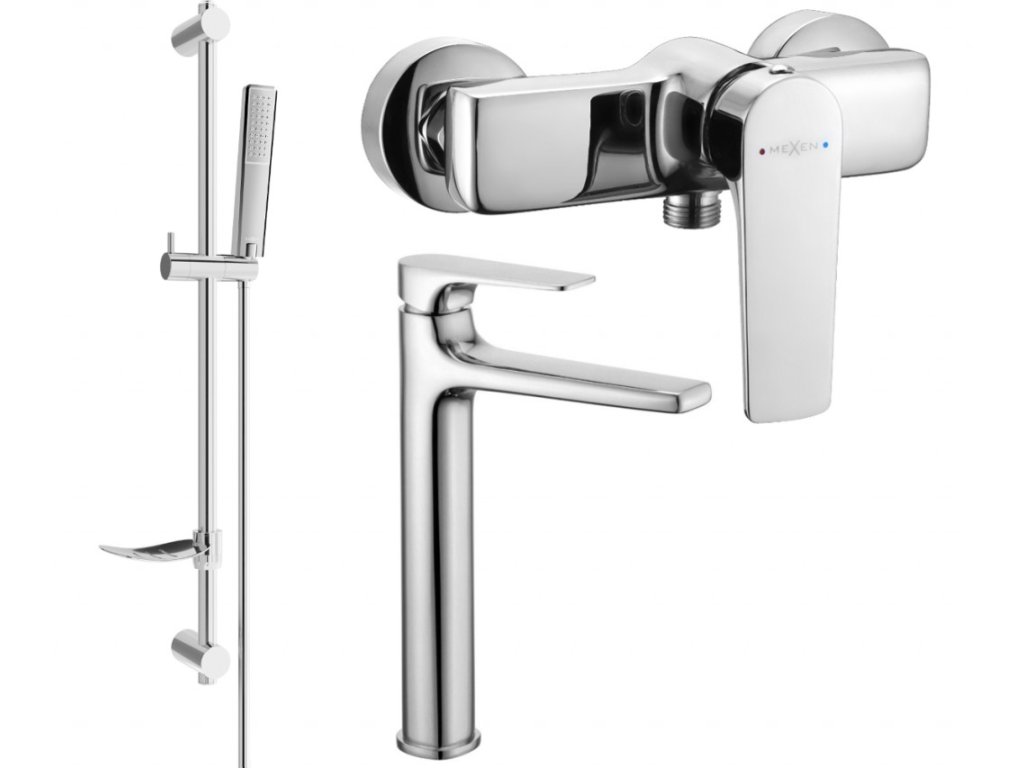 MEXEN/S - Lynx DF72 SET umyvadlová a sprchová baterie s příslušenstvím, chrom 745914DF72-00