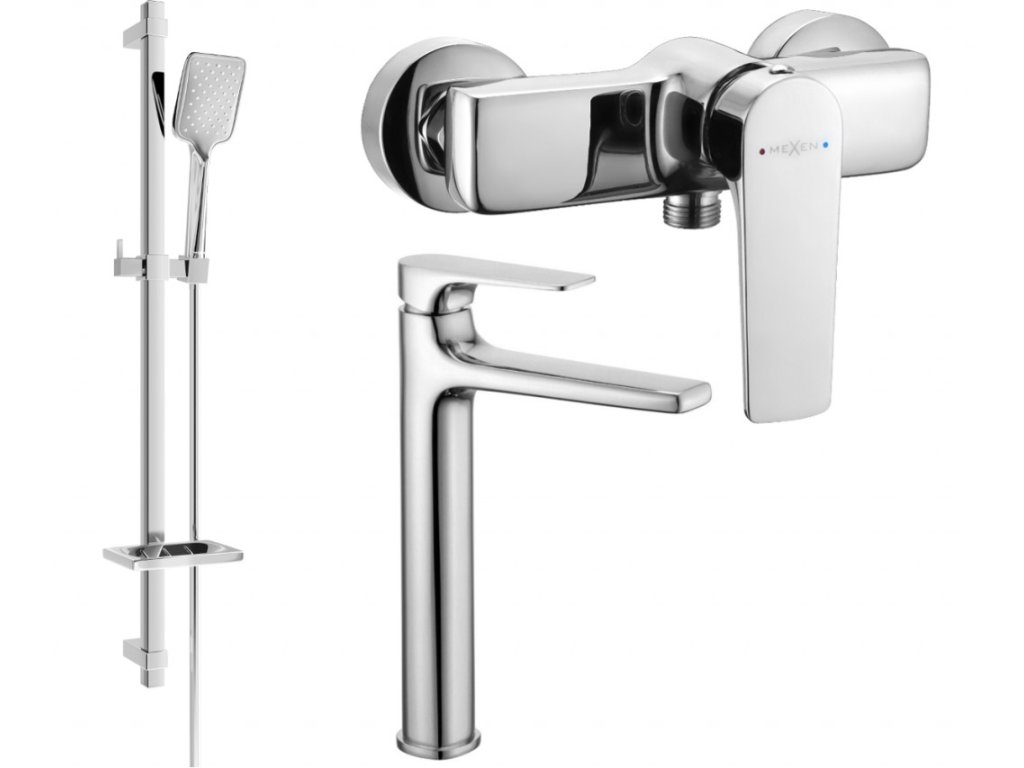 MEXEN/S - Lynx DQ62 SET umyvadlová baterie + sprchová s příslušenstvím, chrom 745914DQ62-00