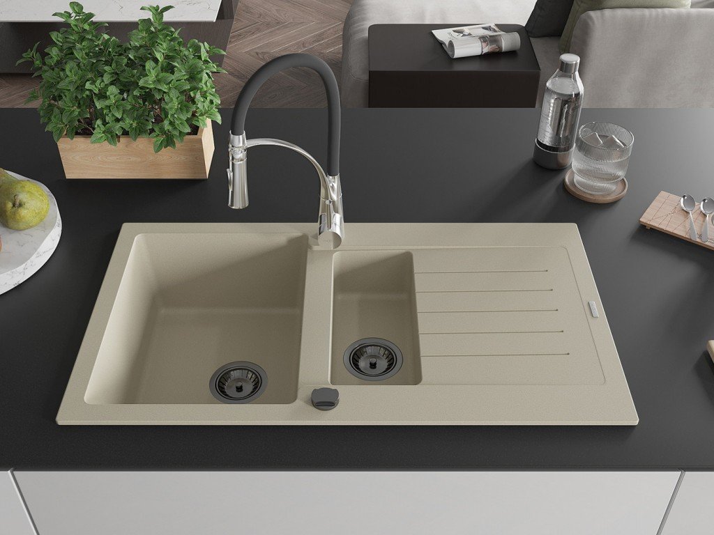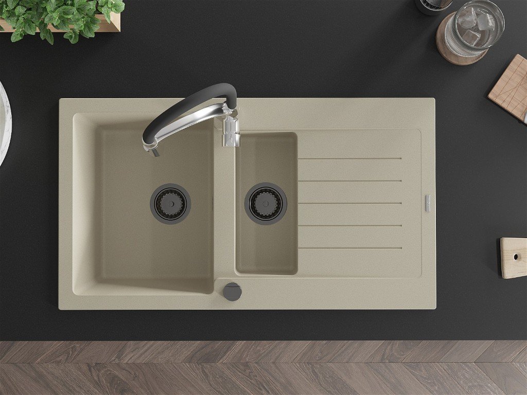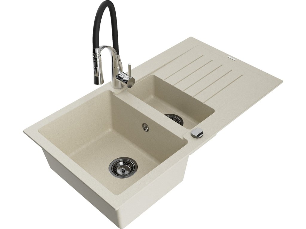 MEXEN/S - Matias granitový dřez 1.5 s odkapávačem včetně baterie Aster, béžová 6502-69-73450-07-B