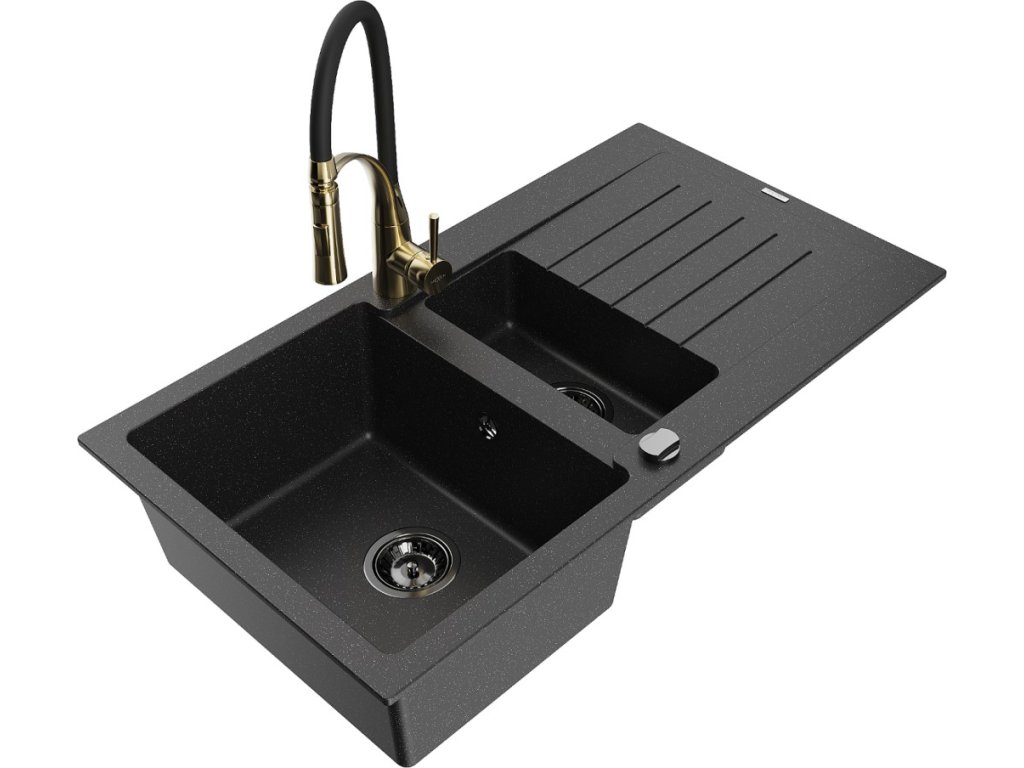 MEXEN/S - Matias granitový dřez 1.5 s odkapávačem včetně baterie Aster, černá/stříbrná 6502-73-73450-57-B