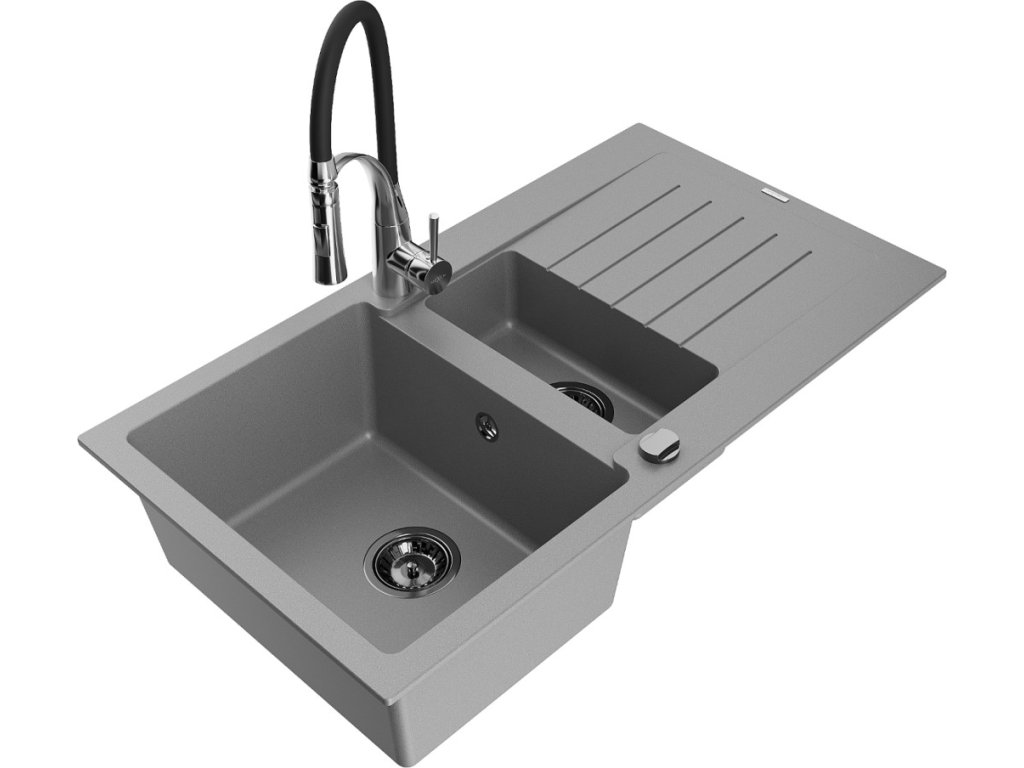 MEXEN/S - Matias granitový dřez 1.5 s odkapávačem včetně baterie Aster, šedá 6502-71-73450-07-B
