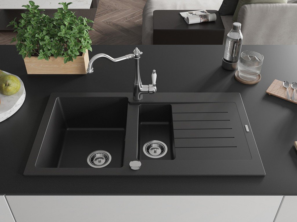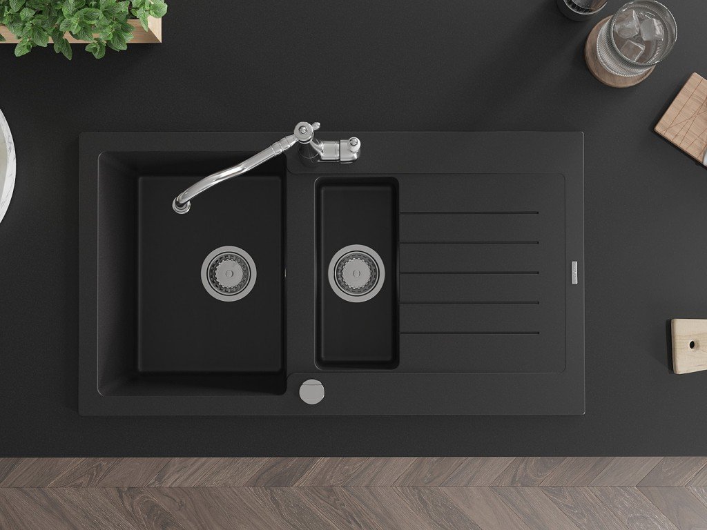 MEXEN/S - Matias granitový dřez 1.5 s odkapávačem včetně baterie Carla, černá 6502-77-670700-00