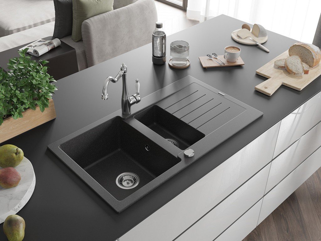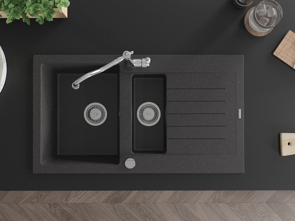 MEXEN/S - Matias granitový dřez 1.5 s odkapávačem včetně baterie Carla, černá kropenatá 6502-76-670700-00