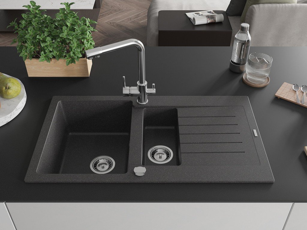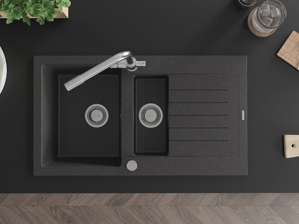 MEXEN/S - Matias granitový dřez 1.5 s odkapávačem včetně baterie Duero, černá kropenatý 6502-76-671600-00